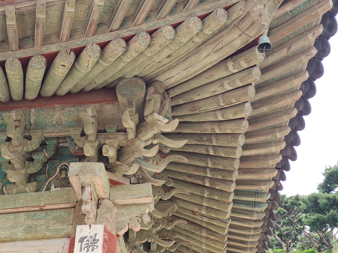분노와 배신감으로 가득 찬 도편수는 공사를 마무리하면서 대웅전 처마 네 귀퉁이에 나부상을 조각했다고 한다. 이 나부상은 벌거벗은 여인의 모습으로, 무거운 지붕을 떠받치고 있는 형태이다. 도편수는 사랑과 믿음을 배신한 여인의 상징으로, 그녀가 평생 부처님의 말씀을 들으며 자신의 죄를 뉘우치게 하려는 의미를 담아 나부상을 만들었다고 전해진다.